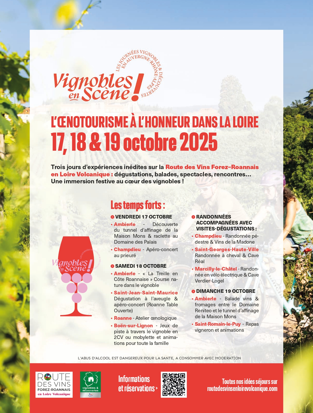 La Loire s’associe à la première édition nationale de Vignobles en Scène, qui se déroulera les 17, 18 et 19 octobre 2025. Inspiré des Journées Européennes du Patrimoine, cet événement invite le public à découvrir la richesse des vignobles français à travers une programmation festive et conviviale.